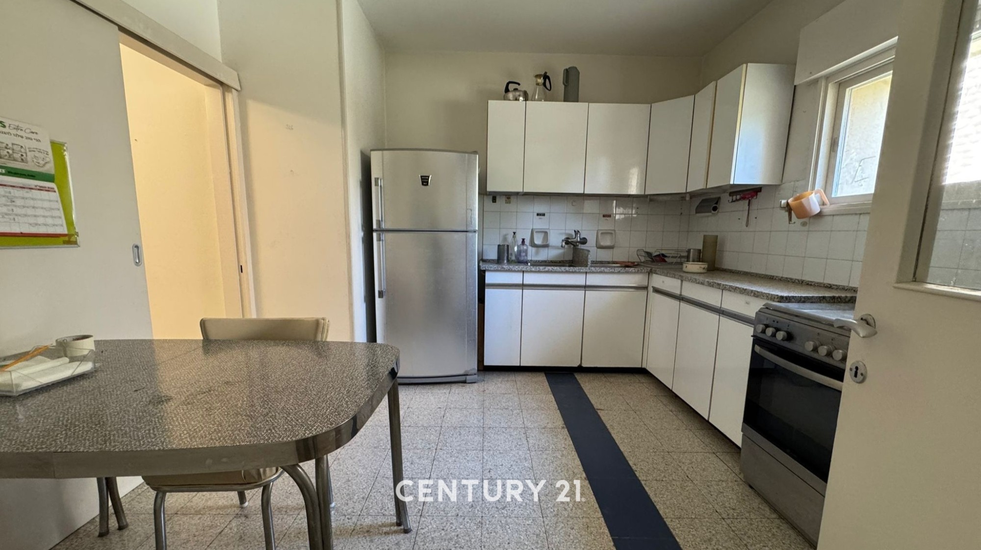 The unit needs renovation and is located on the first floor, accessible by elevator. It also includes a private storage room and covered parking.